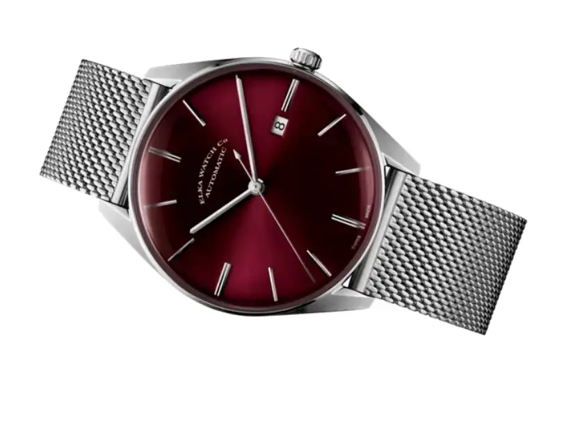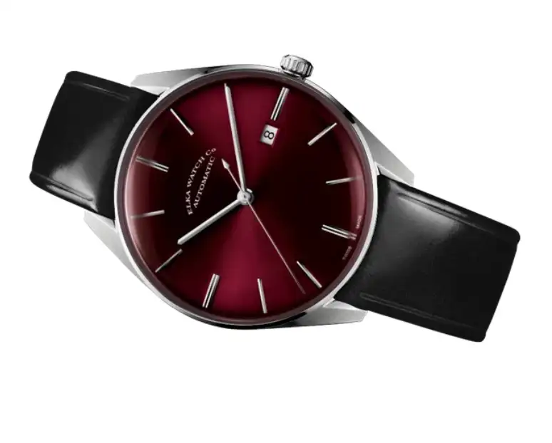 We found the Elka D07-0810 quite exquisite. A deep dark wine-coloured leather strap so seamlessly couples with the Bordeaux dial.