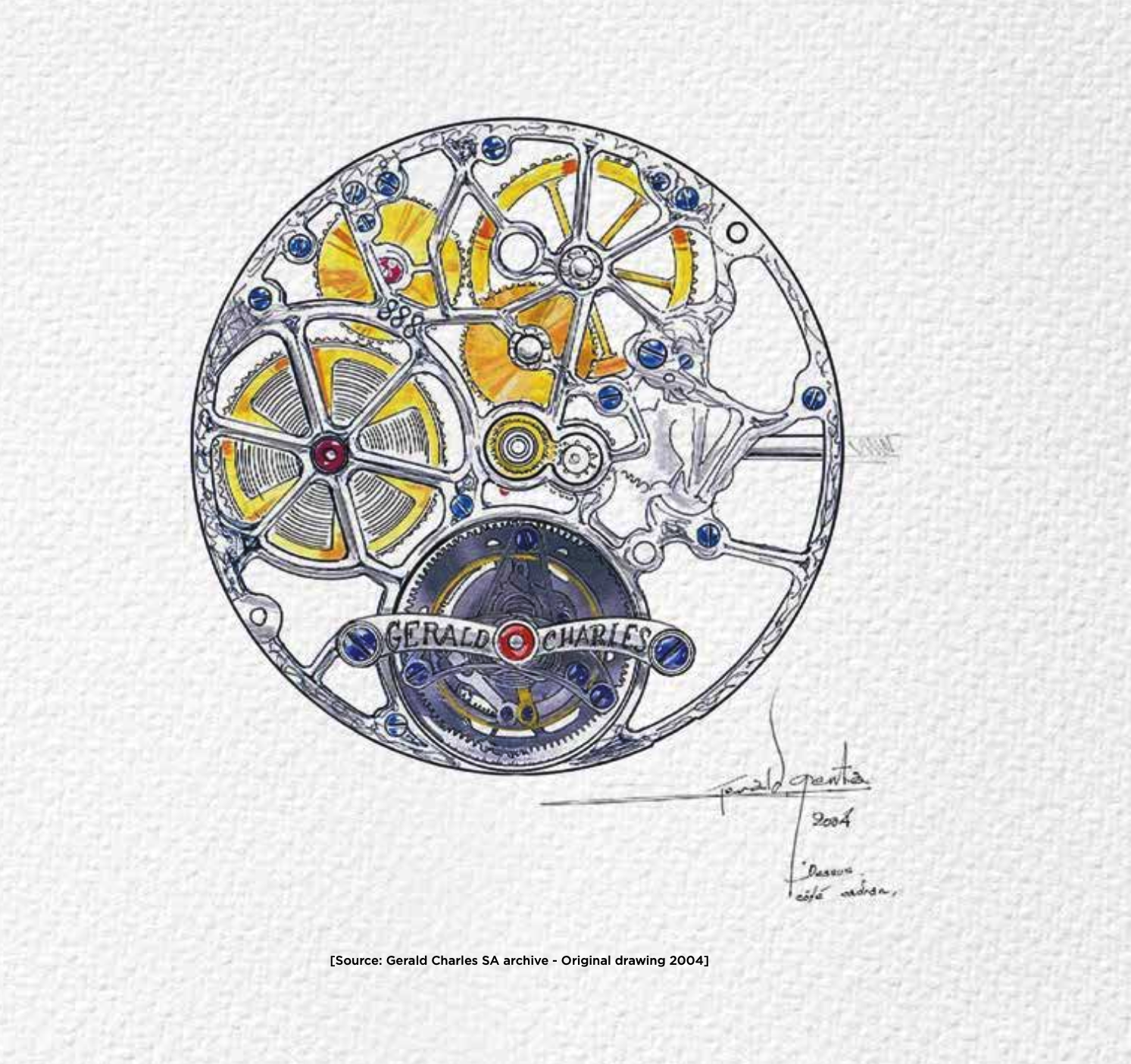 In the sketches, there are fascinating complications, beautifully skeletonised bridges, and designs that remain highly relevant today. This patrimony gives us the foundation to build Gerald Charles for the next 100 years.
