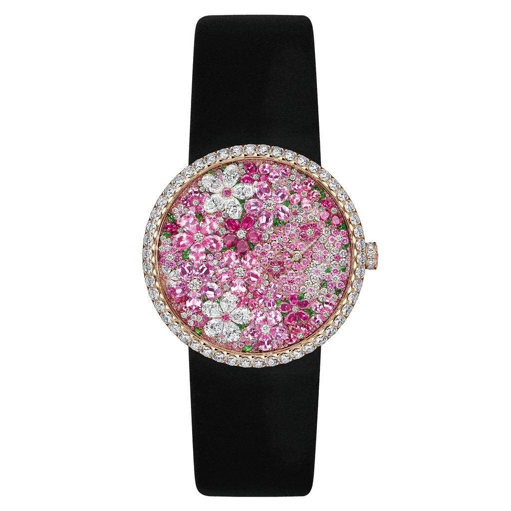 Dior delivered a gem-set wonder inspired by haute couture embroidery. A piece designed not just as a watch, but as wearable jewellery art.