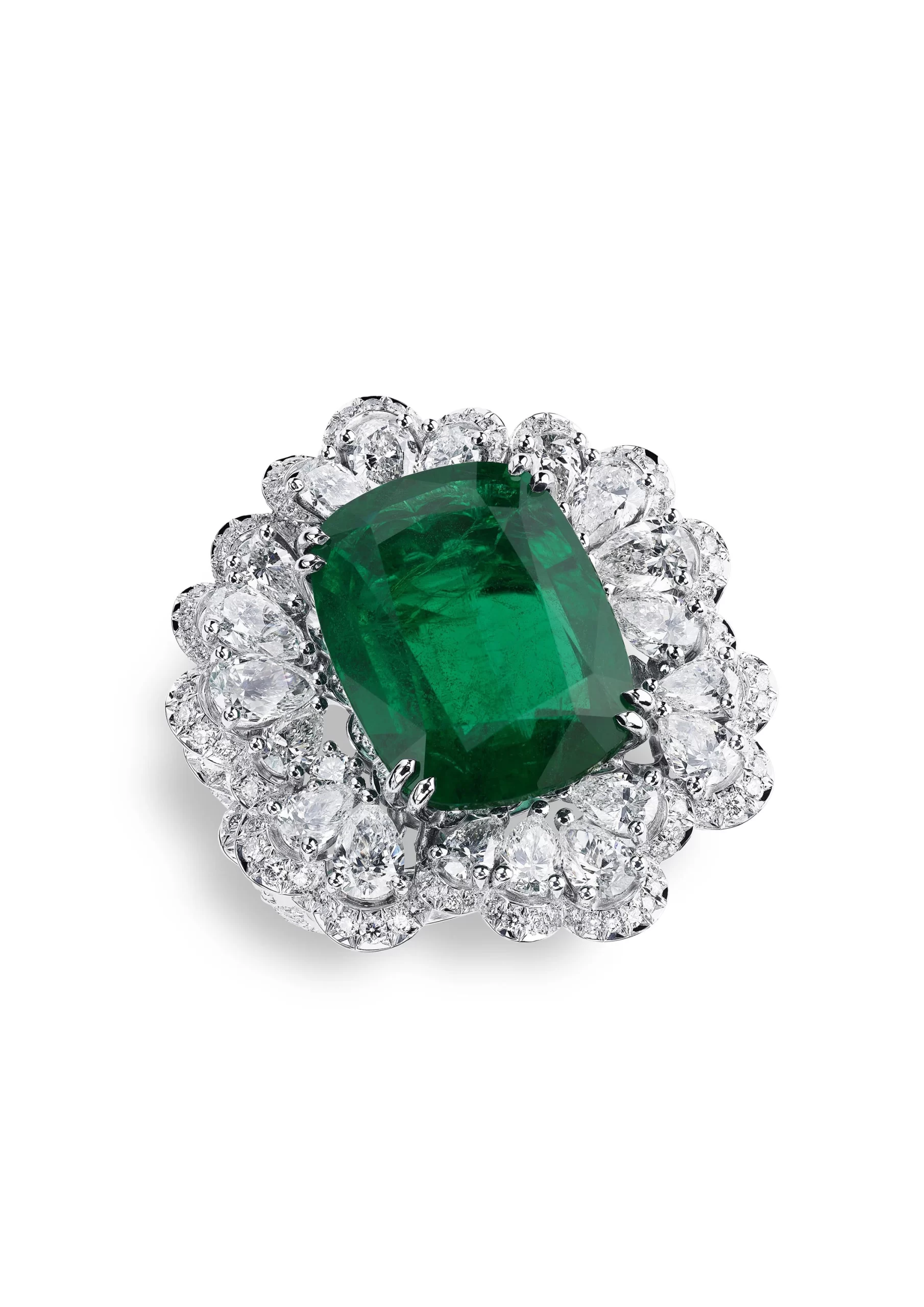 Chopard brought the world’s most skilled gem-cutters from India to its Geneva workshops to meticulously study the gem and propose cuts and facets to reveal its inherent beauty, while preserving its unique soul. This proved to be a lengthy and delicate venture lasting nearly a year, given emeralds are notoriously fragile and demand the utmost expertise. Their internal inclusions, known as “jardin,” require careful handling: cutting too close to them may create fractures that can spread across the gem. Moreover, it is essential to ensure the inclusions’ position does not overshadow the stone’s brilliance. Ultimately, the Insofu gem yielded 850 carats of breathtaking emeralds, each a testament to the artisans’ unparalleled skill and dedication.