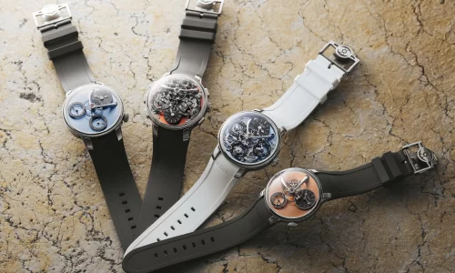 The warm glow of the pink gold case is complemented by the soft brown of the corresponding dial, while the cool tones of the platinum case create a striking contrast with the rich blue dial, enhanced by the high polish of the bezel. On the second platinum-cased model, the colour contrast is amplified by diamonds. The bezel is set with 72 baguette-cut diamonds, making a total of approximately 3.4 carats – the subject of 15 hours of gem-setting work in the Manufacture’s own Métiers Rares™ atelier.