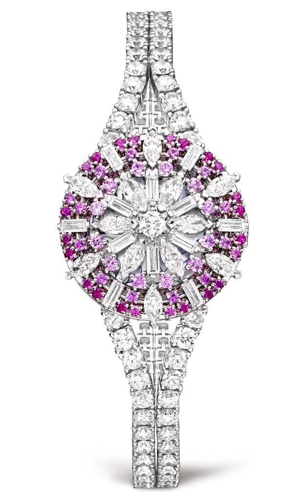 108 pink sapphires (≈ 0.95 carats), adding warmth and delicate contrast