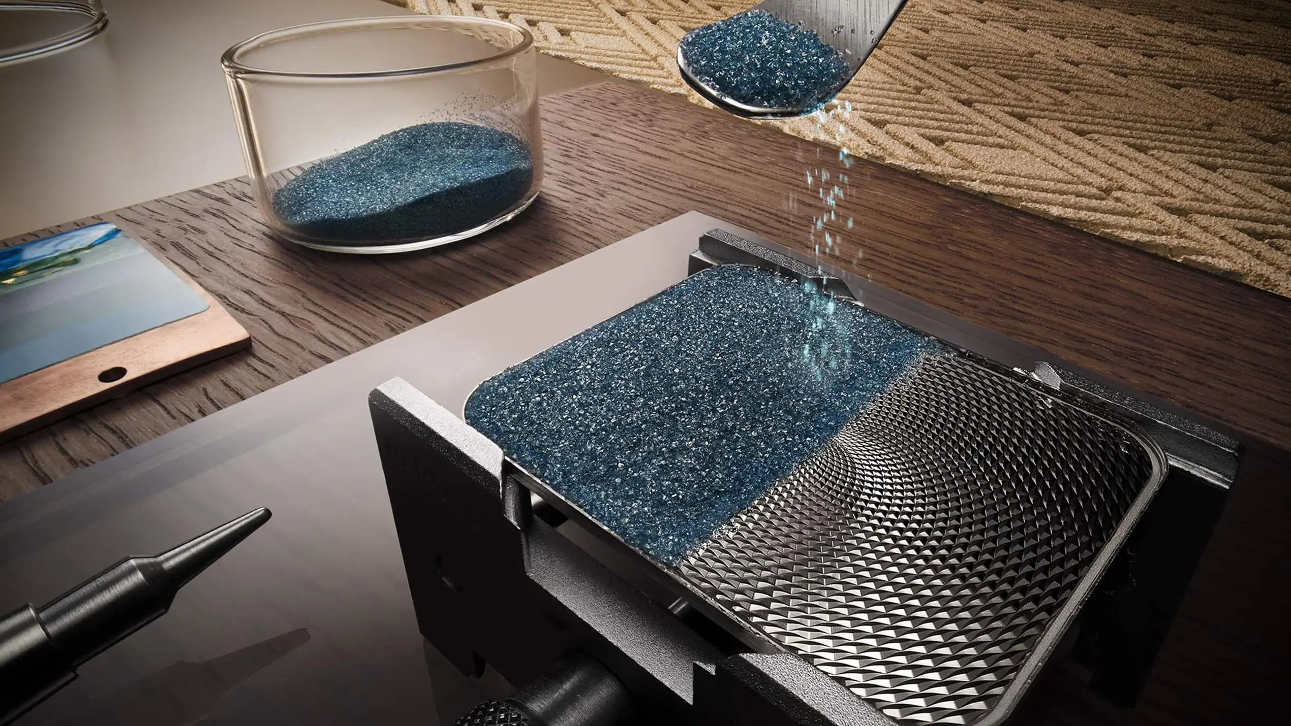 A stunning grand feu enamel dial in deep gradient blue, brought to life by a guilloché barleycorn pattern beneath. Light dances across every curve — a testament to Jaeger-LeCoultre’s in-house Métiers Rares™ artisans.