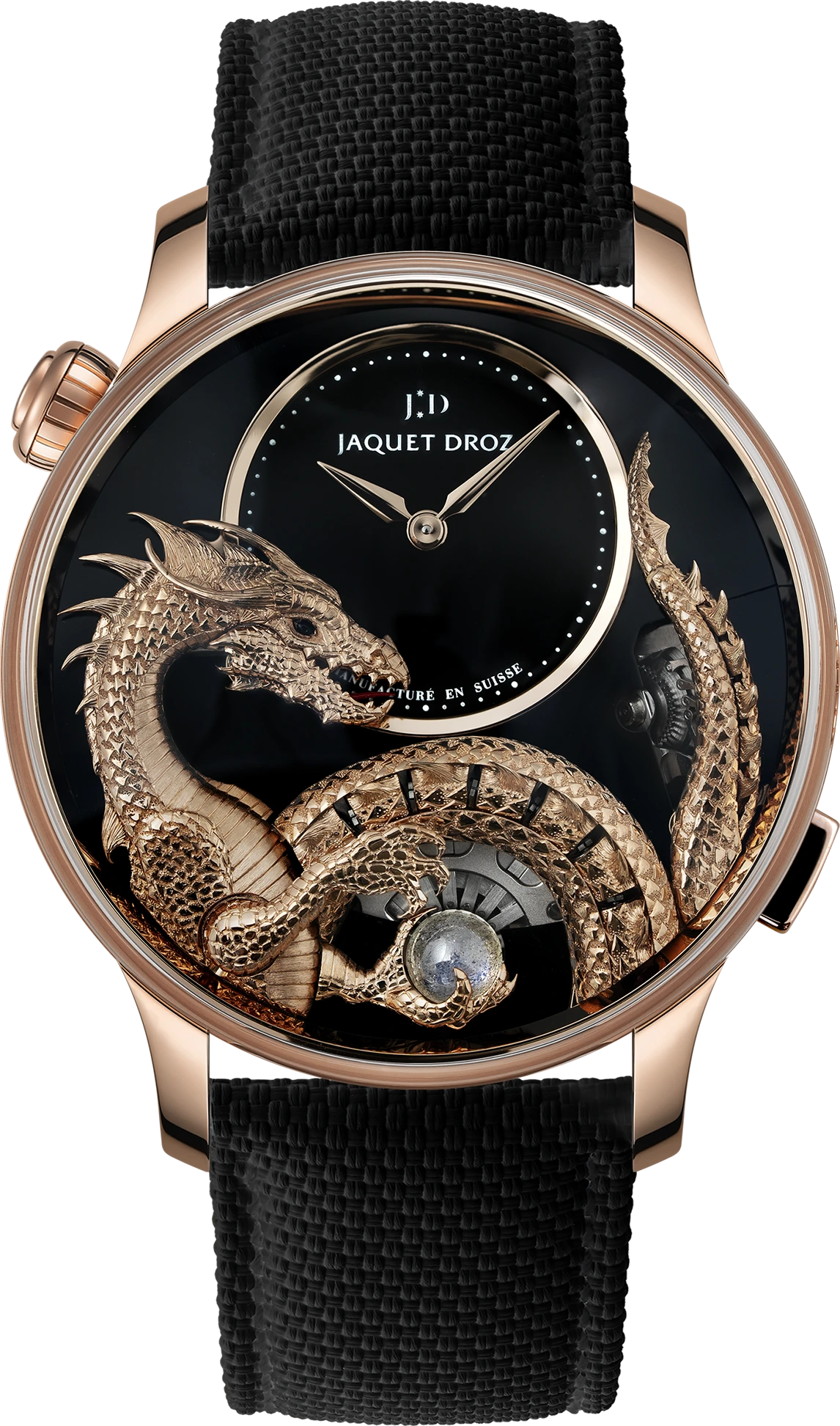 Beyond watches, Jaquet Droz has often blurred the lines between horology and fine art. A striking example is the brand’s collaboration with John Howe, the legendary illustrator behind The Lord of the Rings: “He created a dragon for us — his signature is engraved on the back, and the automaton moves with 16 separate pieces. This is live art. With a lot of pleasure, we are always ready to collaborate with artists. Our concept is to redefine painting, engraving, or sculpture so collectors can travel with their piece of art.”