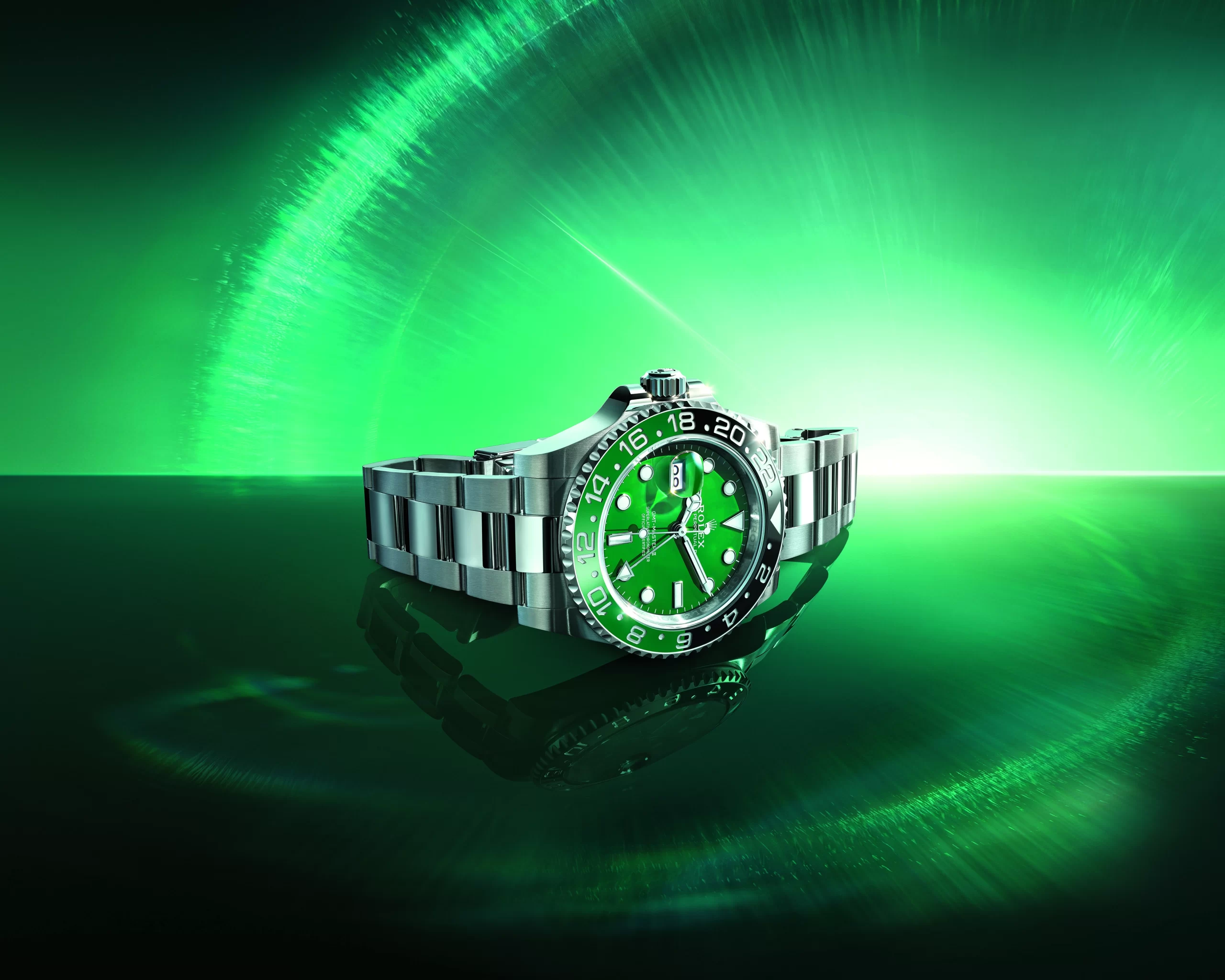 Thank you for reading this post, don't forget to subscribe!Rolex is introducing its first-ever dial made of high-technology ceramic. This inaugural green Cerachrom component makes its debut on an Oyster Perpetual GMT-Master II with winding crown on the left side of the case and date aperture at 9 o’clock, a version which additionally, this year, is presented in 18 ct white gold.