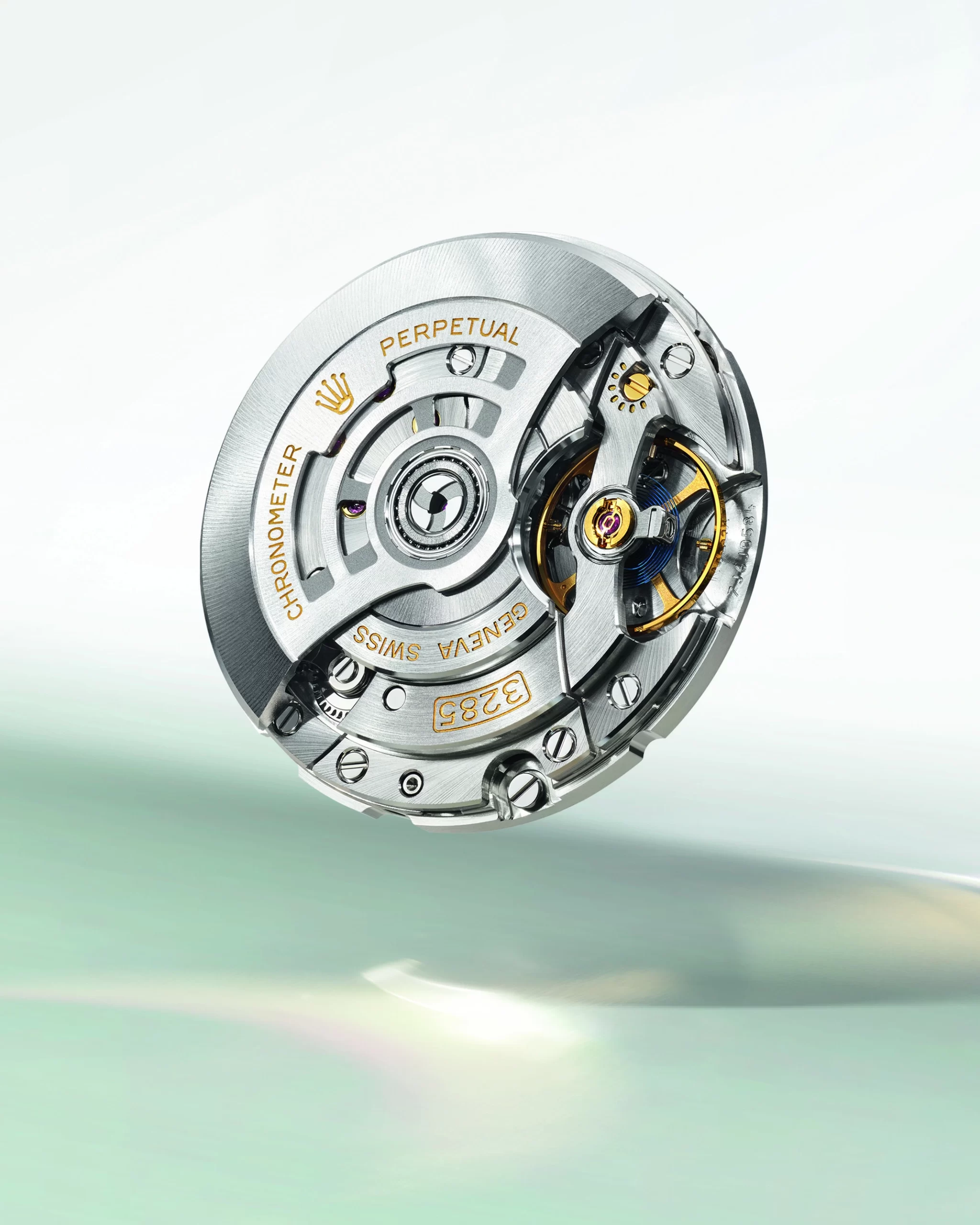 Calibre 3285 incorporates the patented Chronergy escapement, which combines high energy efficiency with great dependability. Made of nickel-phosphorous, this escapement is resistant to strong magnetic fields. The movement is fitted with a blue Parachrom hairspring, manufactured by Rolex in a paramagnetic alloy. The hairspring offers great stability in the face of temperature variations as well as high resistance to shocks. It is equipped with a Rolex overcoil, ensuring the calibre’s regularity in any position. The oscillator is mounted on the Rolex-designed, patented high-performance Paraflex shock absorbers, further enhancing the movement’s shock resistance.