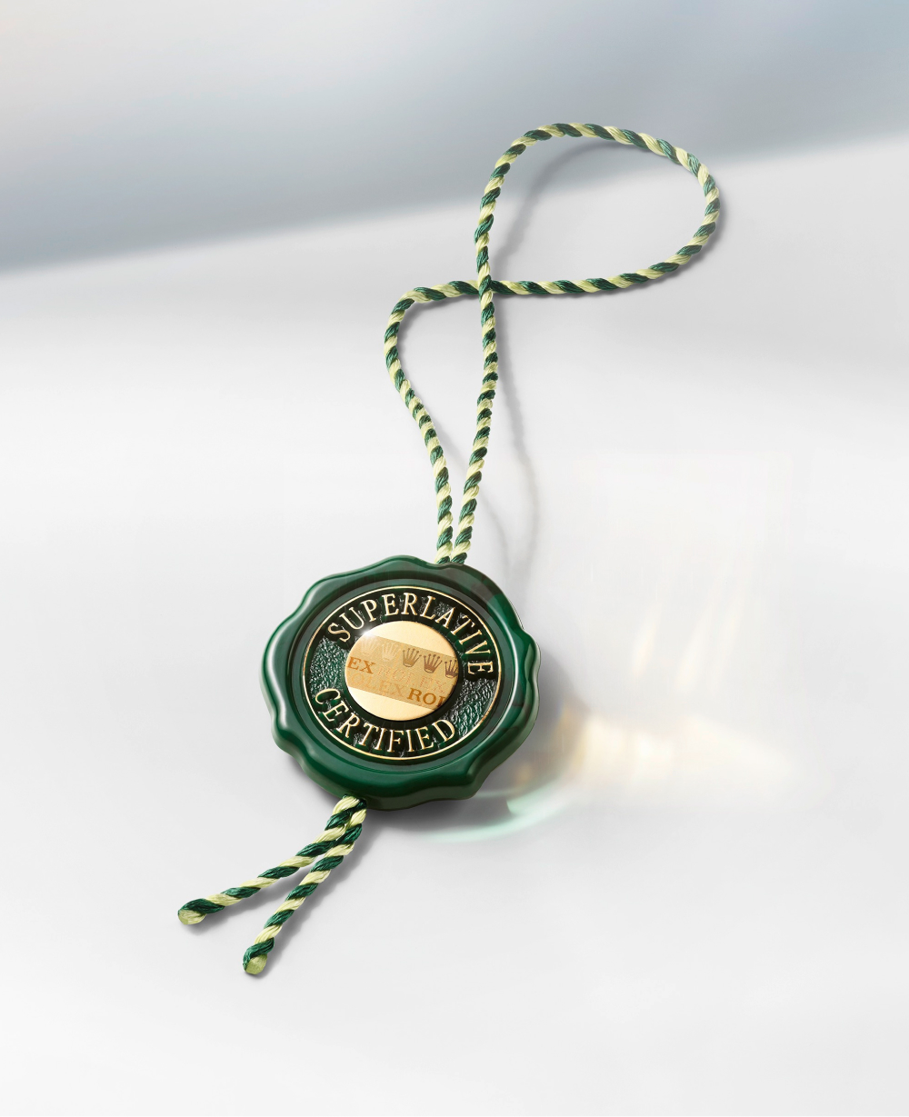 The Superlative Chronometer status is symbolized by the green seal that comes with every Rolex watch and is coupled with an international five-year guarantee.