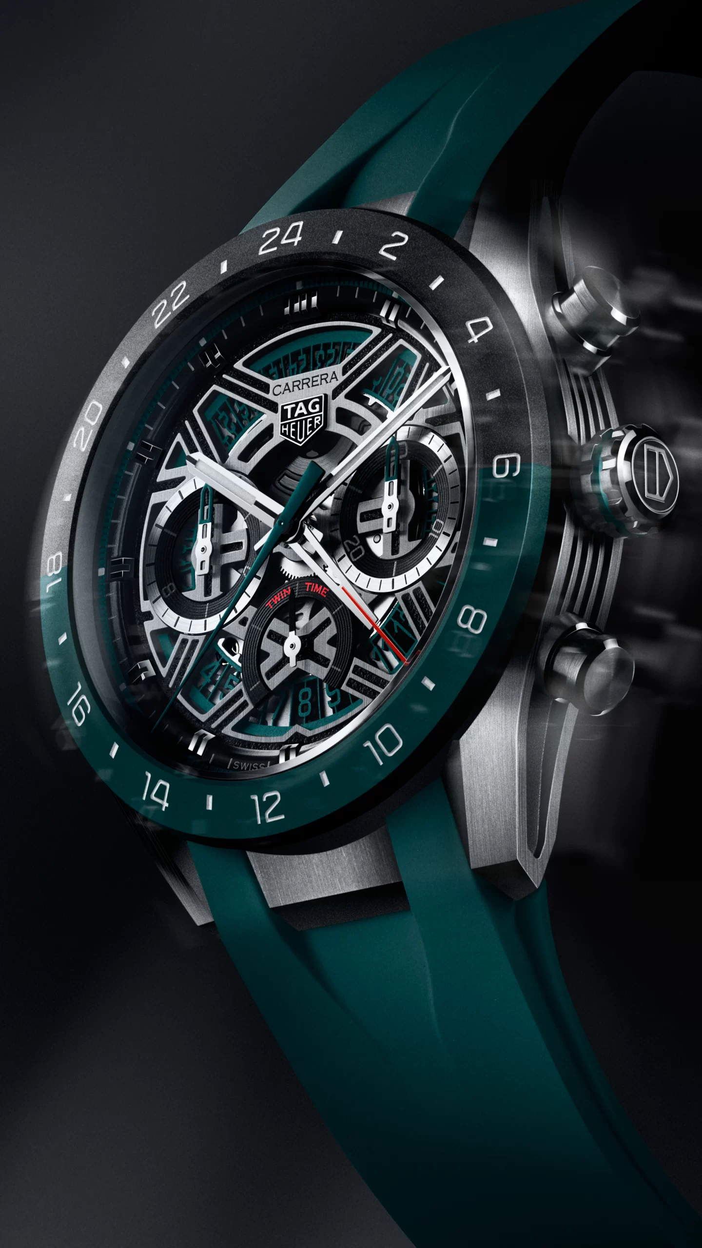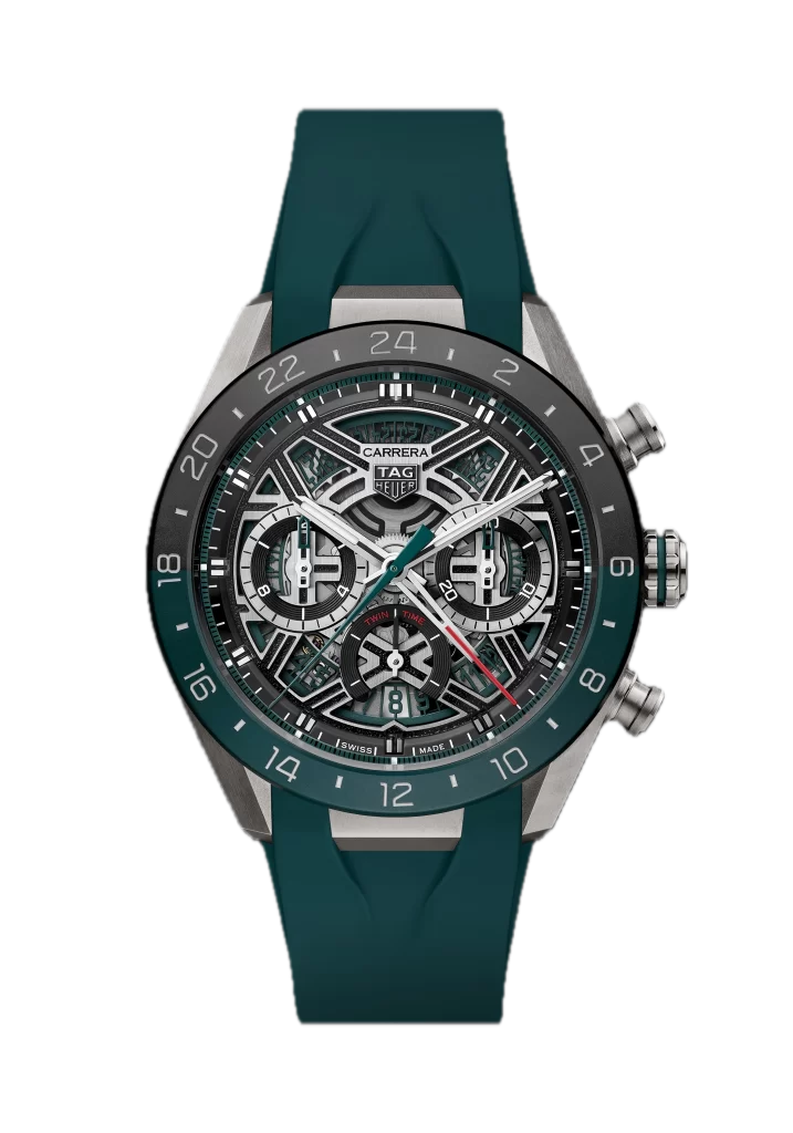This is the first time a GMT function has been brought into the TAG Heuer Carrera Extreme Sport line, and it arrives with a strong visual identity. Teal green is now firmly established as the defining color for GMT within the TAG Heuer Carrera collection, appearing prominently on