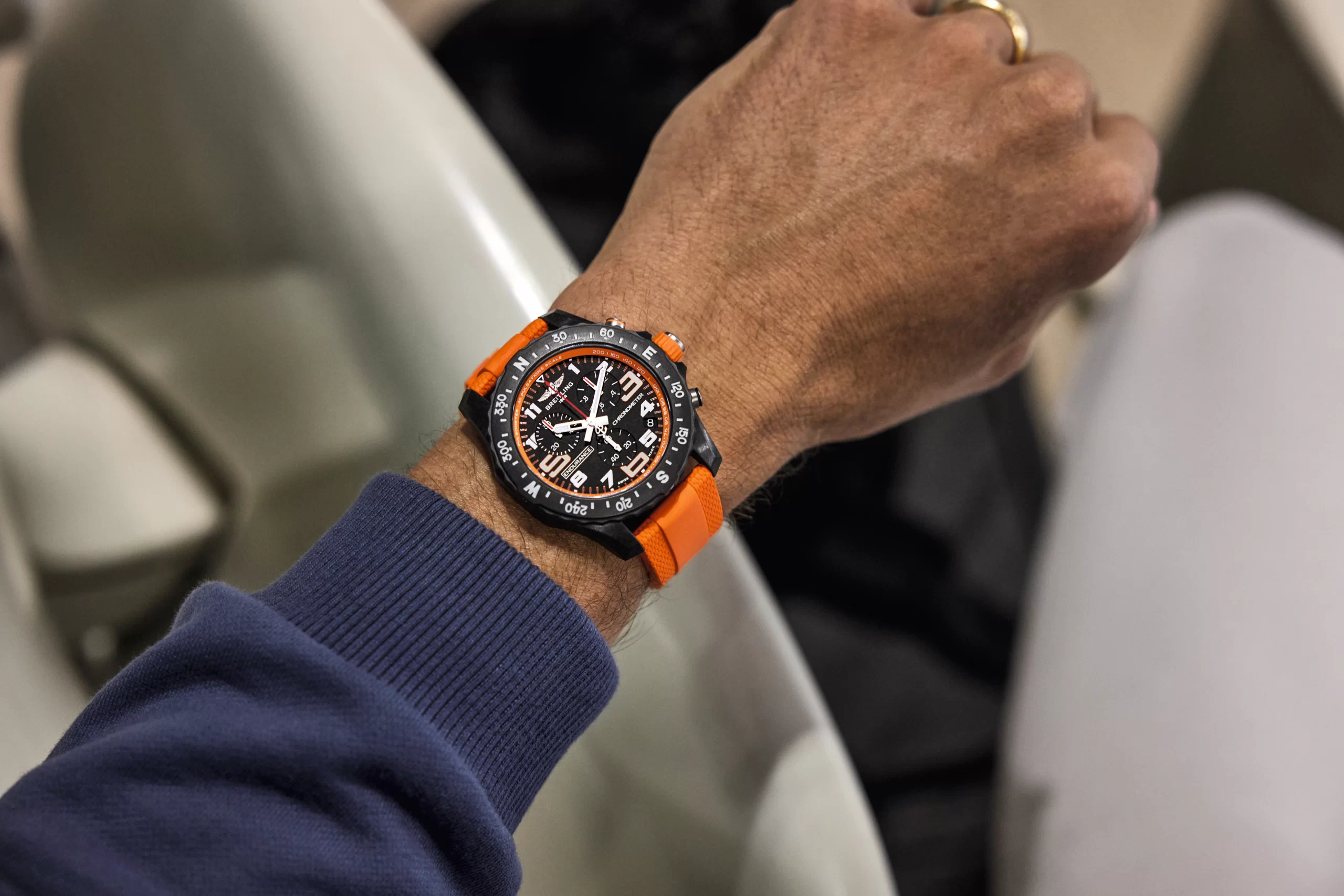 The Endurance Pro is the modern evolution of the Breitling Sprint, introduced in the 1970s as a performance chronograph for the era’s fashion-conscious athletes. Its lightweight resin case and heart-rate-monitoring pulsometer scale made it ideal for sports, the chronograph gave it professional tool-watch status, and its vibrant colors provided the ’70s dayglo cool.
