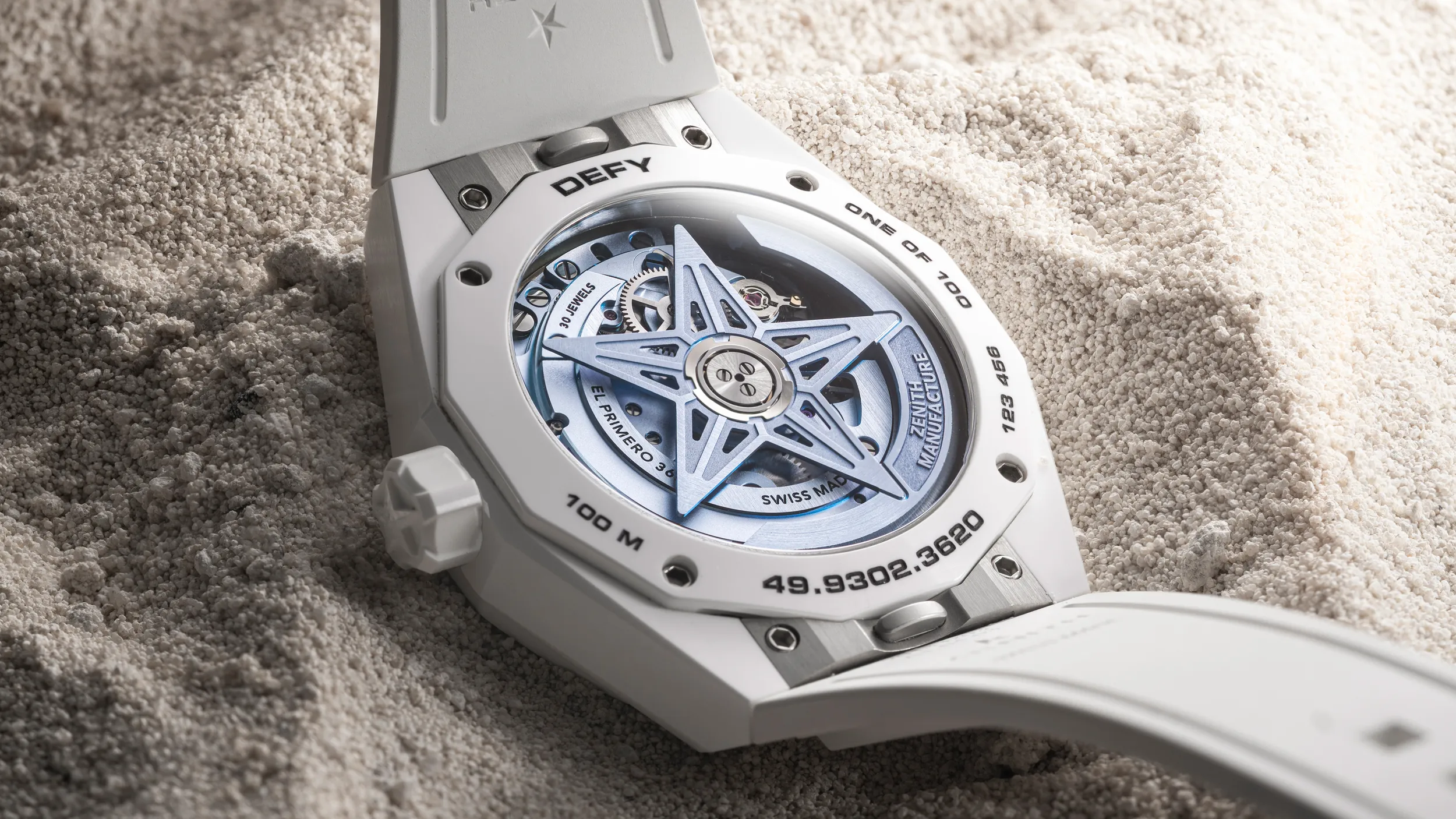 The ZENITH Defy Skeleton White Surfer Ceramic is a limited edition of 100 watches, available from Time + Tide, from authorized ZENITH retailers worldwide as well as ZENITH physical and online boutiques around the world.