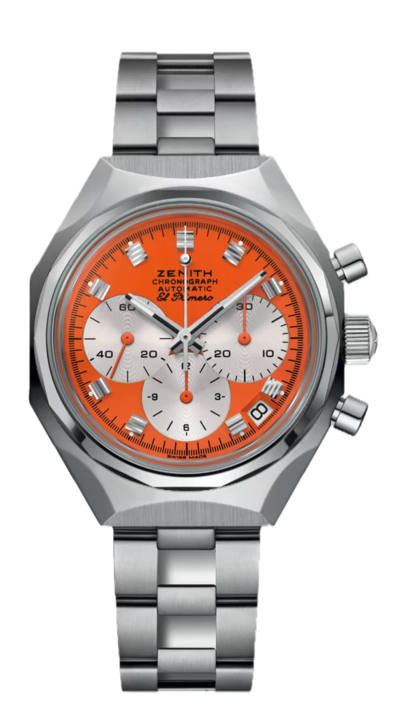Key points: Automatic El Primero column-wheel chronograph movement. Silicon escape-wheel and lever. Screwed-in crown.